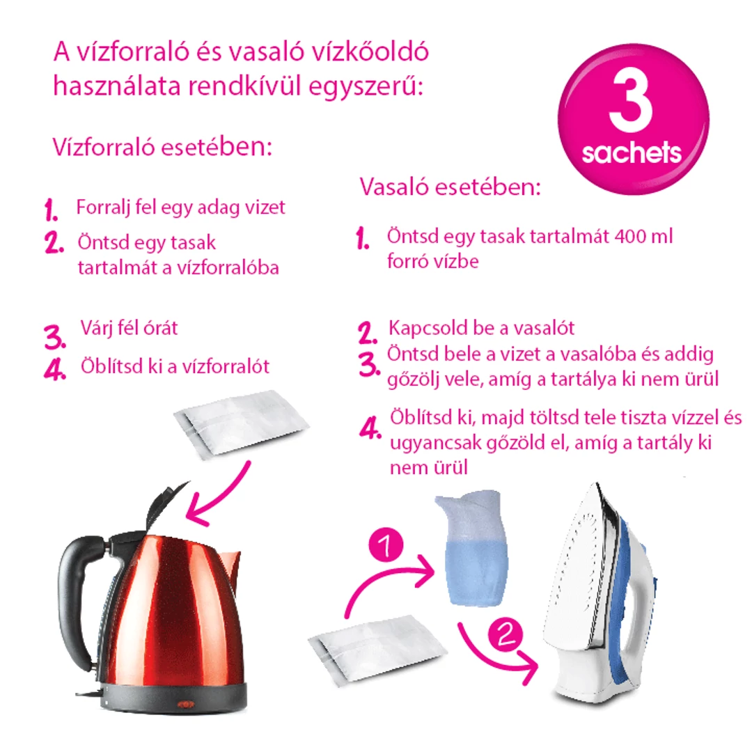 A vízforraló és vasaló vízkőoldó használata rendkívül egyszerű: