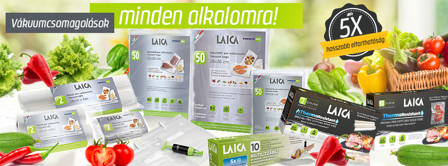 LAICA vákuumfólia és vákuum zacskó szett AJÁNDÉK LAICA ExtraSlim Pro vákuumozó fóliahegesztő géppel