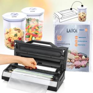 LAICA PROFESSIONAL PRO vákuumcsomagoló szett (vákuumos fóliahegesztő gép+50 db vákuum zacskó+vákuumozható doboz szett)